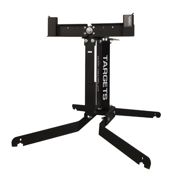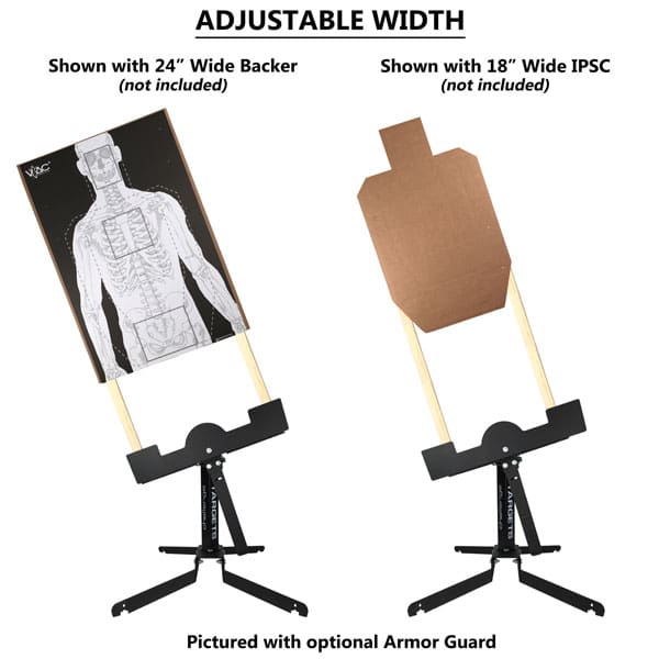 The width of the target holder is adjustable allowing shooters to utilize standard targets and backers ranging from 18″ to 24″ wide. The target holder includes spring loaded tubes and thumb screws to snugly secure your 1×2 wood furring strips.