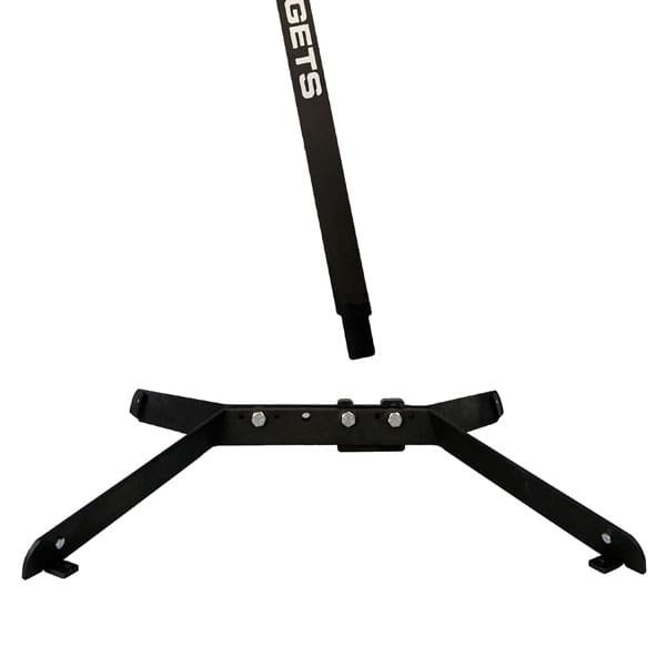 The base of the target incorporates an innovative four point stance which elevates the center of the target dispersing the weight to the outer four corners for excellent stability. The stand legs include anchor holes for staking if extra stability is needed (stakes not included). Bases interlock with each other so they can be stacked up to 20 units high.
