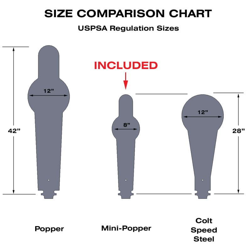 For reference, USPSA Official rules refer to this shape as a USPSA Mini-Popper but you may hear people refer to it as a 2/3 Pepper Popper or a US Popper.