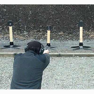 This target system is well designed, easy to set up, safe,very durable and a great value.I use with my Glock 23 40 cal.S&W..Will buy this product again.No negatives with this target system.