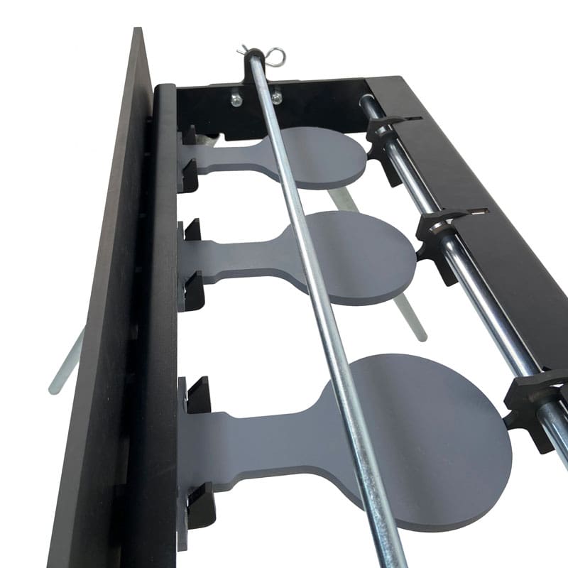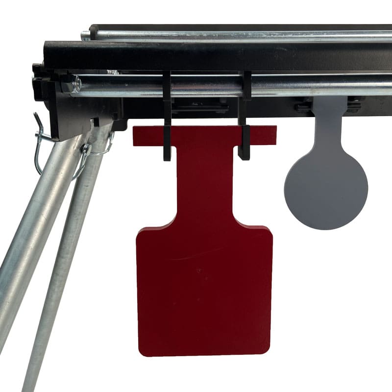 Our Shoot-to-Reset Plate Rack (SRP) is one of our most versatile and addictive products! Shoot the 5″ round plates and they lock in the upright position concealed behind the AR500 steel front guard. Shoot the 5″ square plate to reset the target. This model is perfect for 9mm, .40 S&W, .45 ACP, 10mm and other common centerfire handgun calibers at distances as close as 10 yards. It’s also outstanding with centerfire rifles like .223 Remington at 100-400 yards. The target also work with magnum caliber handguns and larger caliber rifles at longer distances (maximum energy at the target is 1,000 ft./lbs).