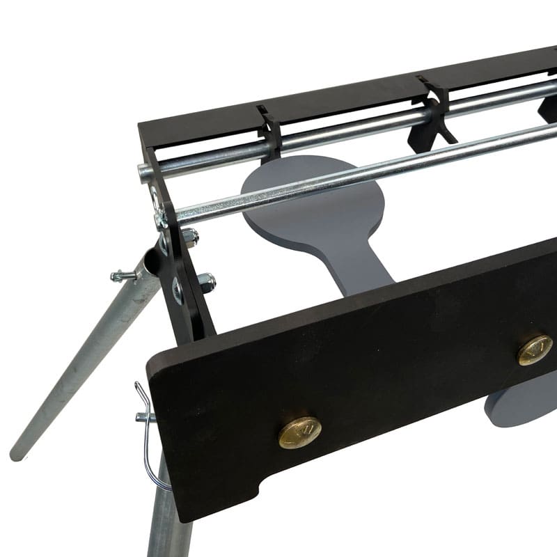 After initial assembly, the target can be broken down for transportation in 1-2 minutes without tools. The plate rack includes four legs made from standard 1″ (EMT) conduit making them light weight and easy to replace if damaged.