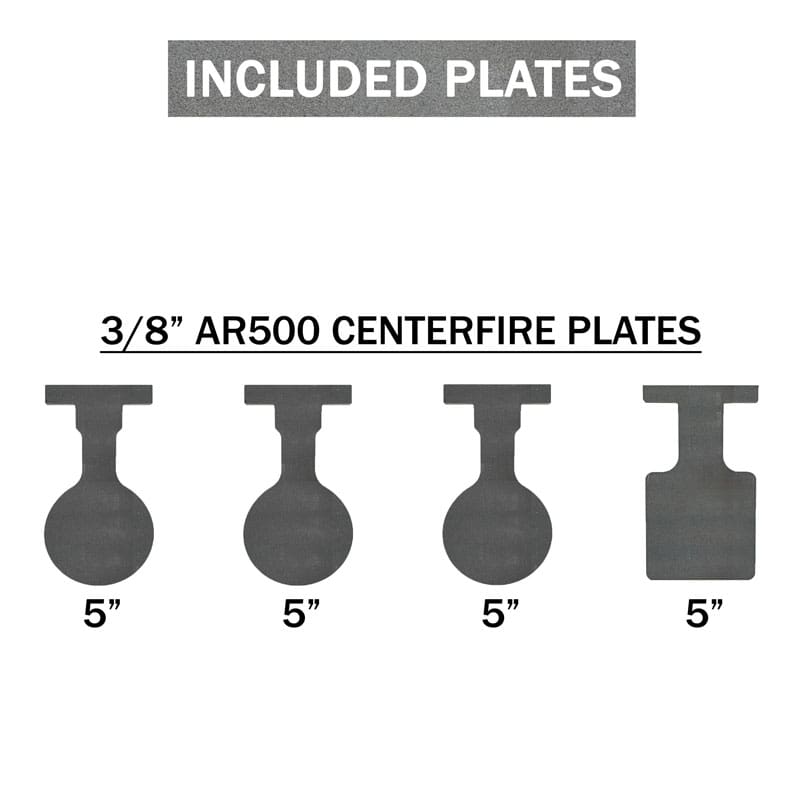 Target Plates: (Qty 3) 5″ diameter x 3/8″ thick AR500 steel – unpainted